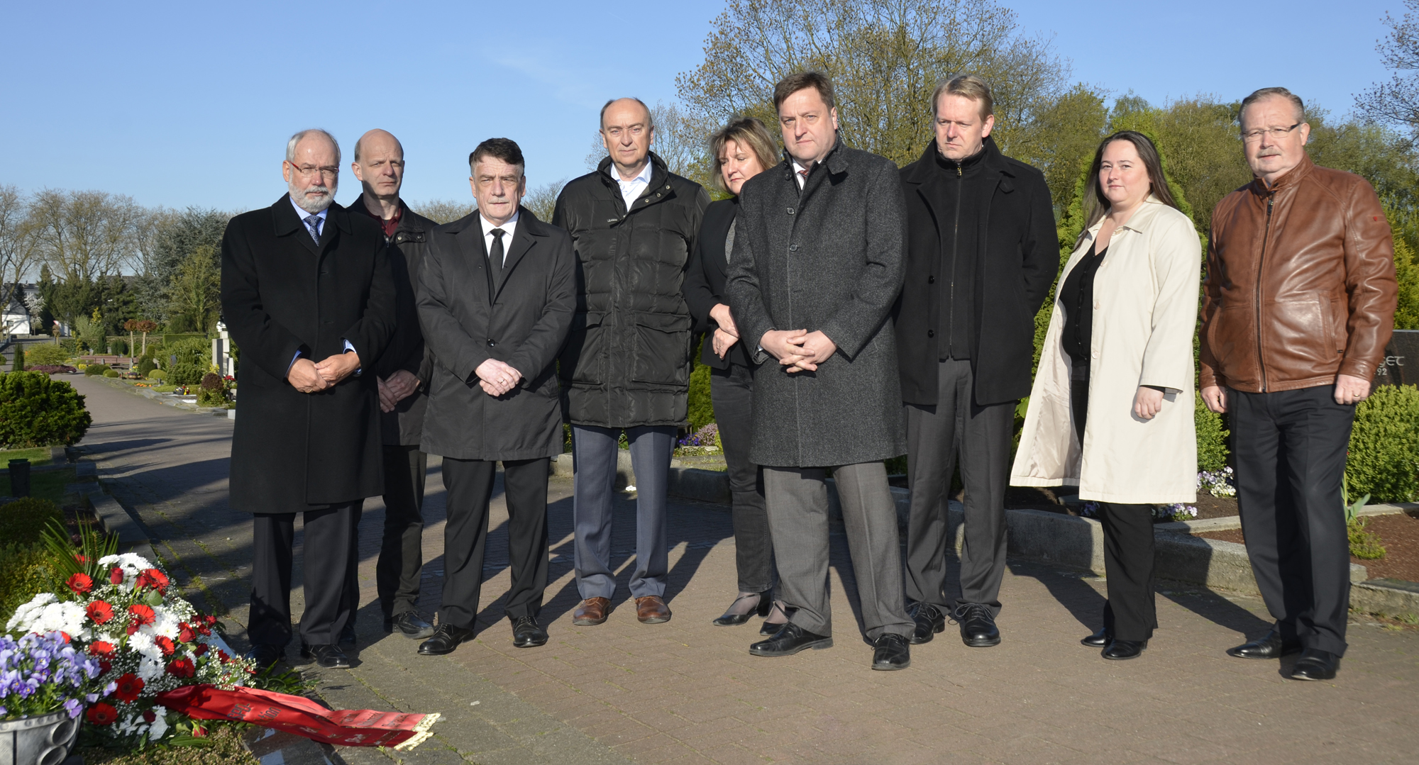 Zum 80. Geburtstag legten die Spitzen des SPD-Unterbezirks und der SPD-Ratsfraktion Oberhausen einen Kranz an Heinz Schleußers Grab nieder.