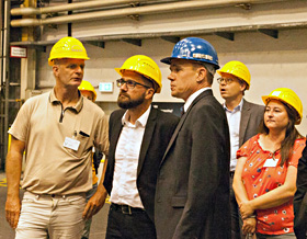 Werksführung – Carsten Breder (MAN), Thomas Kutschaty MdL, Sonja Bongers MdL, André Janßen (MAN), Stefan Zimkeit
