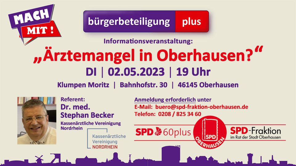 Den Zuhörerinnen und Zuhörern wurde auch etwas geboten: Dr. Stephan Becker, niedergelassener Arzt in Osterfeld und Kreisvorsitzender der Kassenärztlichen Vereinigung Nordrhein, ermöglichte Einblicke hinter die Kulissen und schilderte Probleme aus dem Praxisalltag, von denen Patientinnen und Patienten nur selten erfahren. Mehr …