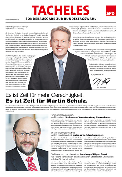 Es sind nur noch wenige Tage bis zur Bundestagswahl und der Veranstaltungskalender der Oberhausener SPD wird einfach nicht dünner! Das ist ein erfreuliches Zeichen denn es beweist, dass wir bis zum Wahlsonntag am 24. September alles dafür geben werden, unseren Bundestagsabgeordneten Dirk Vöpel erneut mit einem starken Mandat nach Berlin zu schicken!