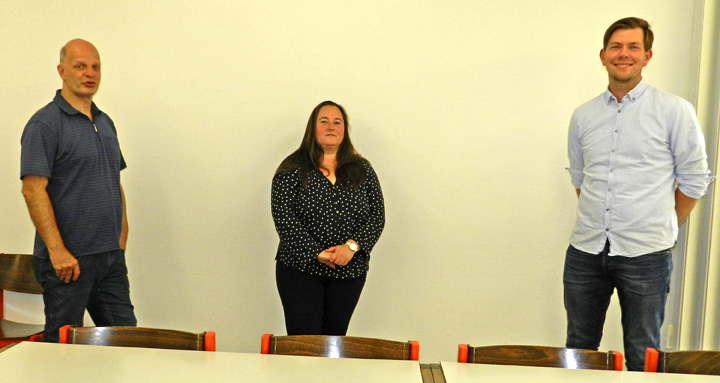 Gruppenbild in Corona-Zeiten: Die Oberhausener Landtagsabgeordneten Stefan Zimkeit und Sonja Bongers mit Alexander Frank, dem Vorsitzenden der Oberhausener GdP