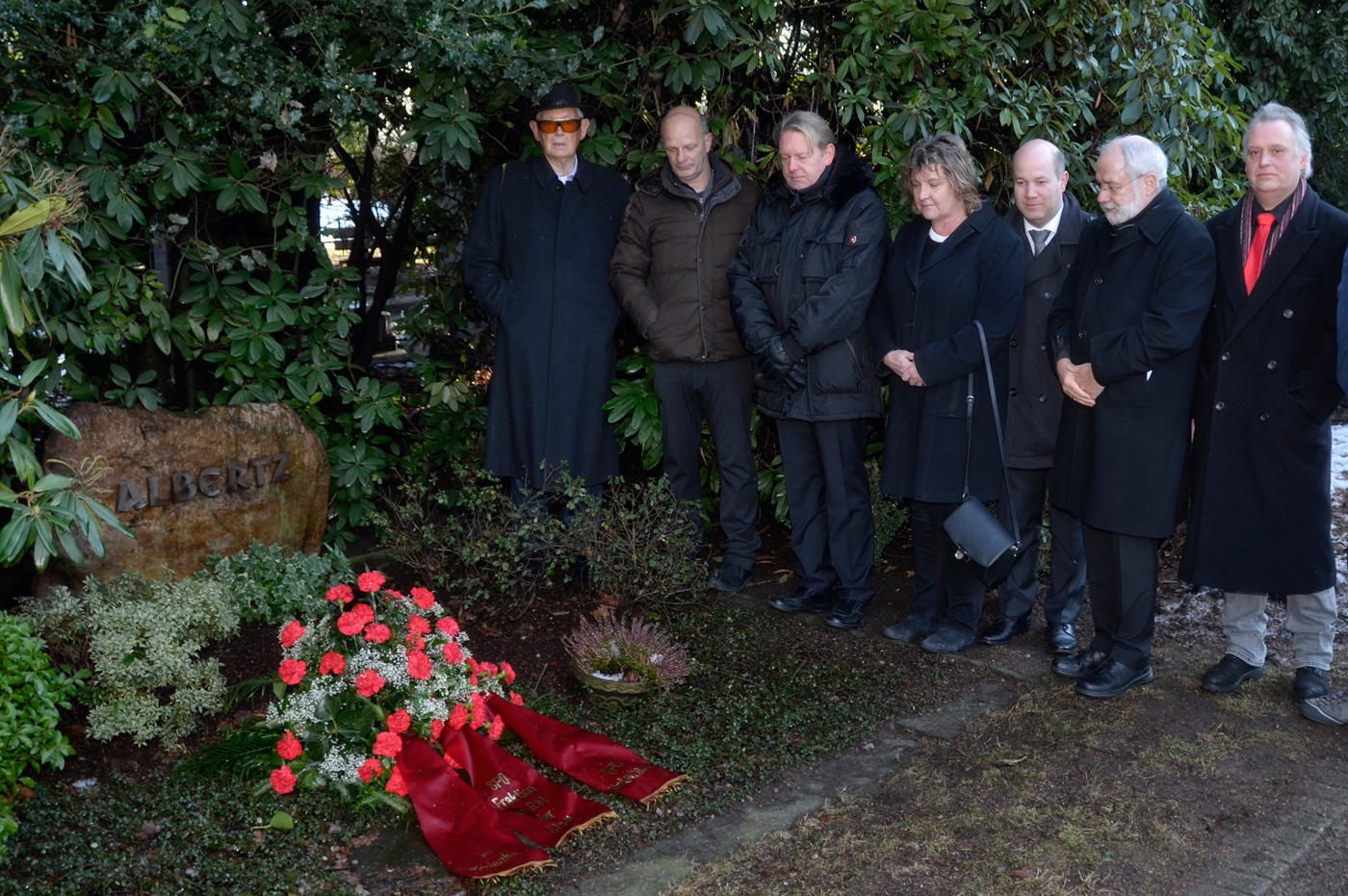 Gedenken an Luise Albertz: SPD-Fraktionschef Heinz Schleußer, Willi Meinicke, Oberbürgermeister Friedhelm van den Mond, CDU-Fraktionschef Hans Wagner und Oberstadtdirektor Dieter Uecker