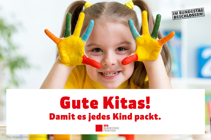 Mit dem Gute-Kita-Gesetz verbessern wir die Qualität in den Kitas und entlasten Familien bei den Gebühren. Dafür hat sich die SPD immer eingesetzt. Alle Kinder verdienen die gleichen Chancen auf gute Bildung. Unsere Kleinsten brauchen gut ausgestattete Kitas mit mehr Personal, längeren Öffnungszeiten oder einer besseren Ausstattung.