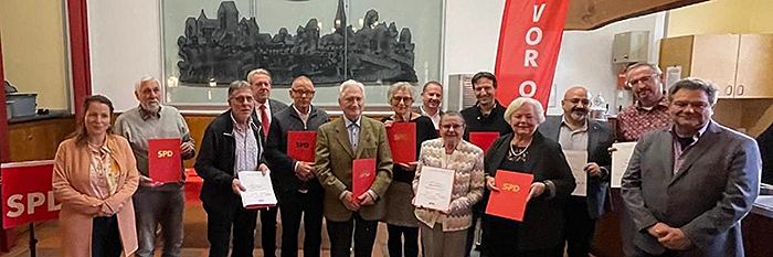 Gruppenbild von der gemeinsamen Jubilarehrung der SPD-Ortsvereine Alsfeld- Holten und Sterkrade-Nord im Kastell Holten