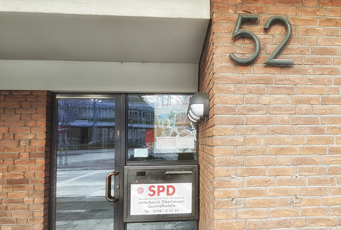 Die Geschäftsstelle der Oberhausener SPD, kurz „Parteibüro“, ist Servicebüro für Bürger und Parteimitglieder. Außerdem befinden sich hier die Wahlkreisbüros der Oberhausener SPD-Abgeordneten im Bundestag und im Landtag. Für Bürgerinnen und Bürger ist das Büro eine Anlaufstelle, um Informationen zur politischen Arbeit der SPD vor Ort und im Allgemeinen zu erhalten. Die ehrenamtlich arbeitenden Parteimitglieder werden ebenfalls vom Büro unterstützt.